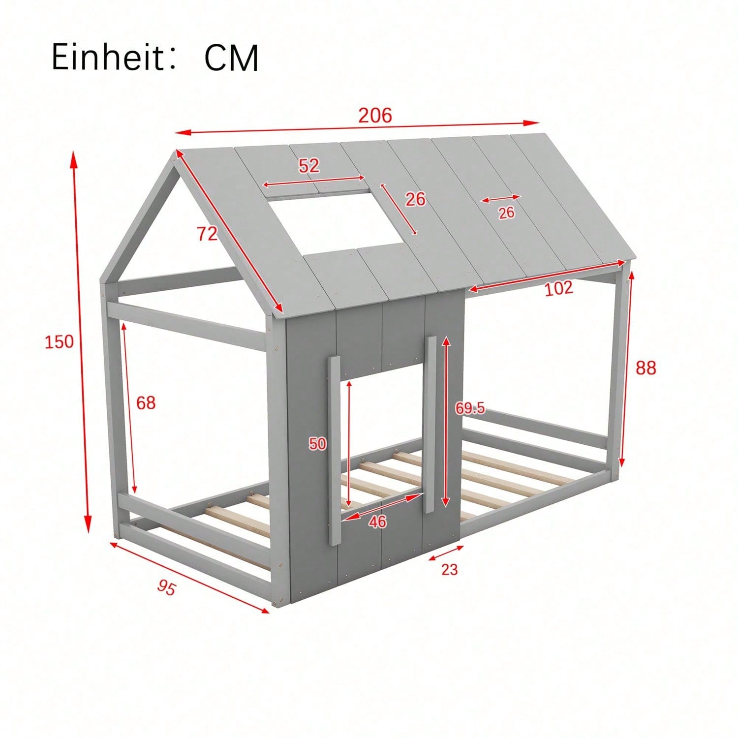 Dimensions du produit Longueur une fois assemblé (cm) : 206,00 Largeur une fois assemblé (cm) : 95,00 Hauteur une fois assemblé (cm) : 150,00 Poids du produit (kg) : 29,00 Dimensions du colis Sous-article 1 : WF309947AAE Quantité : 1 199 x 27 x 15 cm, 18 kg Sous-article 2 : WF309946AAE Quantité : 1 112 x 33 x 15 cm, 13,56 kg Caractéristiques du produit Design maison : Le lit en forme de maison ajoute une touche ludique. Vous pouvez le décorer pour créer votre propre espace privé. Style moderne : Il est temps pour votre petit bout de chou d'emménager dans son premier lit, et n'importe quel lit ne conviendra pas à la chambre originale que vous avez en tête. Décorable : Ce design ouvert laisse libre cours à votre créativité, vous permettant d'ajouter une œuvre d'art originale ou un élément de décoration original sans masquer le mobilier existant. Structure robuste : Fabriqué en pin et MDF de haute qualité, ce lit est silencieux et résistera à l'épreuve du temps. Montage facile : Toutes les pièces, outils et instructions sont livrés directement à votre domicile dans des cartons soigneusement emballés. Le montage peut donc être réalisé en moins d'une heure avec l'aide d'un ami. Description Lit enfant 90 x 200 cm, lit enfant en forme de maison, lit simple avec toit et fenêtre Votre petit bout de chou va bientôt emménager dans son premier grand lit double, et n'importe quel lit ne conviendra pas à la chambre originale que vous avez en tête. Ce cadre de lit ouvert, fabriqué en pin et MDF de haute qualité, fera forte impression. Ce design ouvert laisse libre cours à votre créativité et vous permet d'y ajouter une œuvre d'art originale ou de créer une pièce unique sans masquer le mobilier existant. Avec son allure de maison, le lit ajoute une touche de fantaisie et peut être aménagé pour créer votre espace privé.