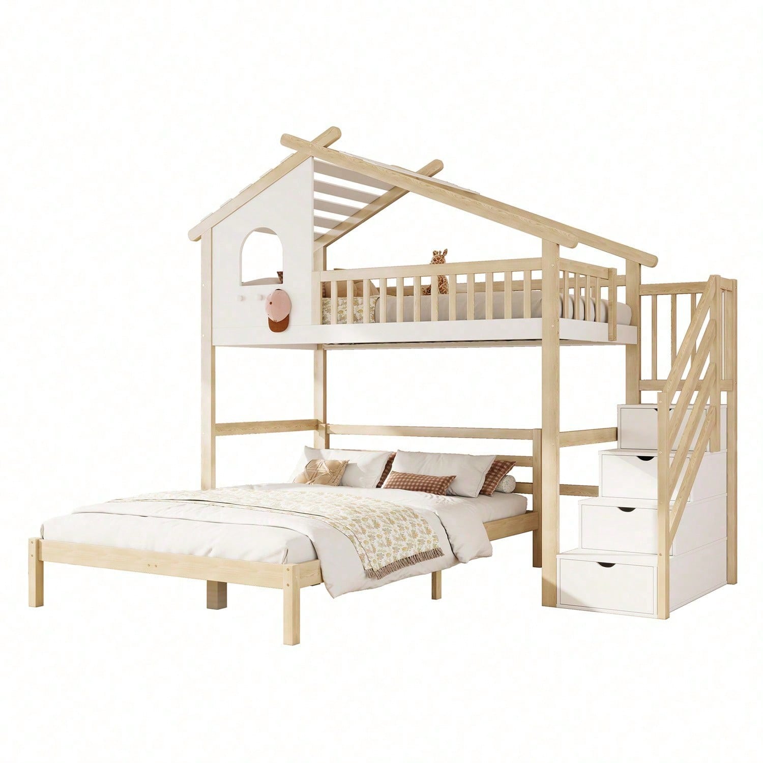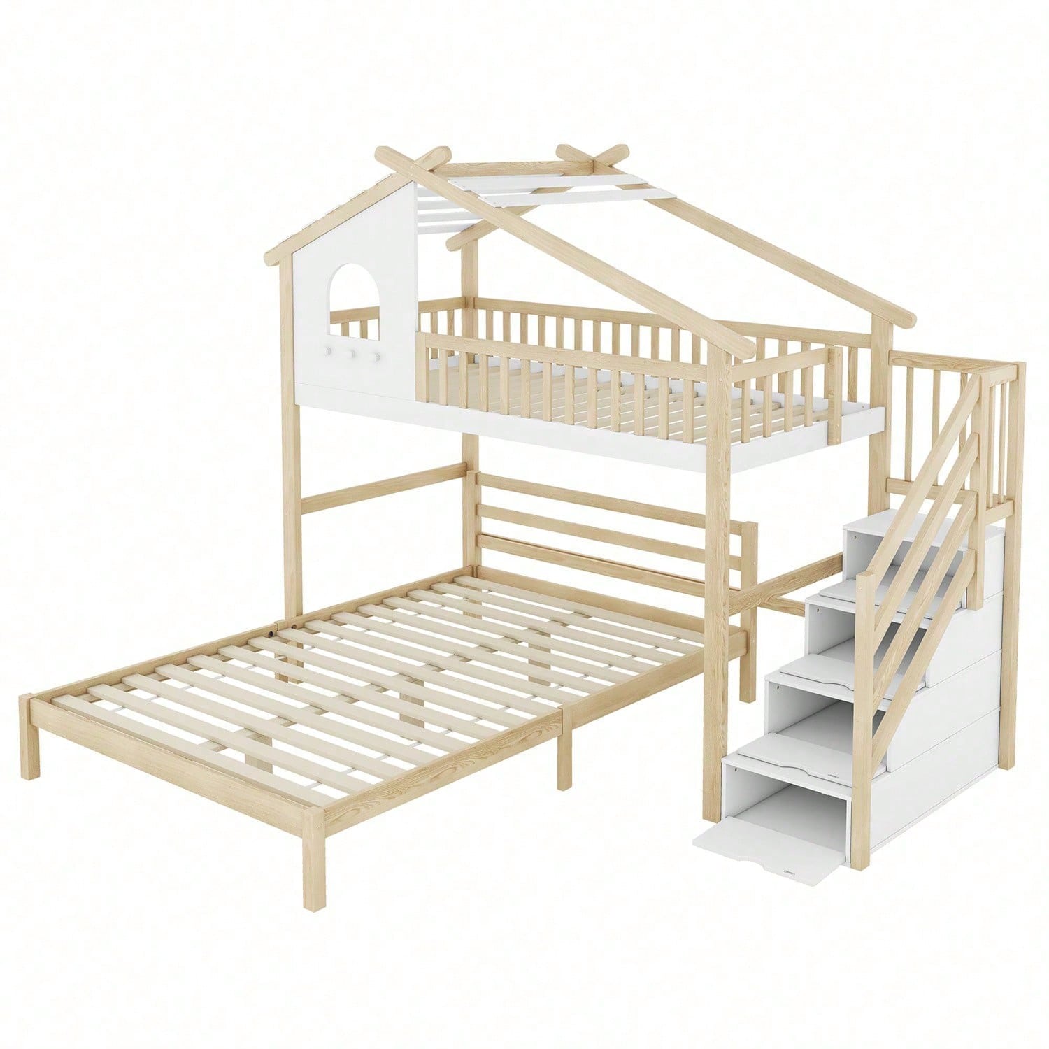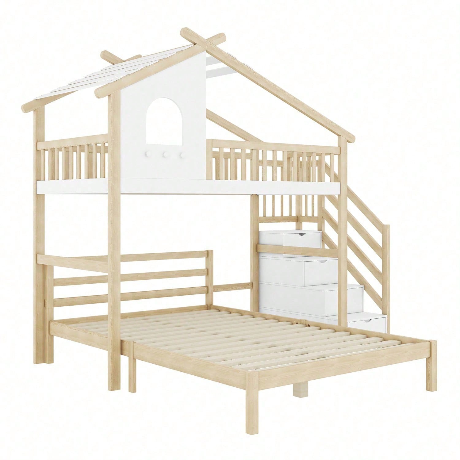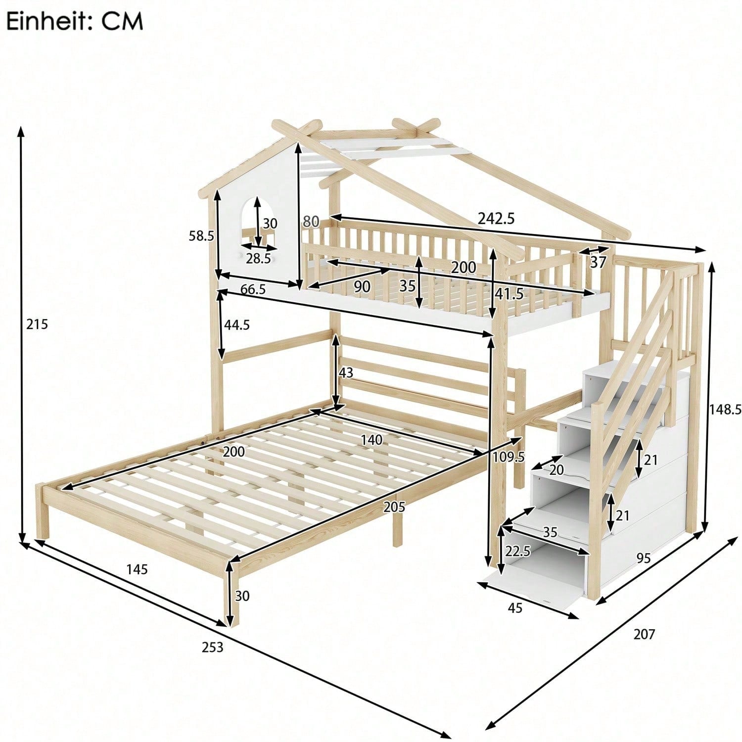Spécifications Informations produit Code article : WX000409AAN-1 Type de produit : Article combiné Nom du produit : Lit mezzanine, 90 x 200 cm, barrière de lit, échelle de rangement, fenêtre, barrière de , lit d'appoint 140 x 200 cm, blanc + naturel Couleur principale : Naturel + Blanc Matériau principal : Pin Dimensions du lit : 90 x 200 cm Dimensions du produit Longueur (monté) : 253,00 Largeur (monté) : 207,00 Hauteur (monté) : 215,00 Poids du produit (kg) : 93,10 Dimensions du colis Sous-article 1 : N636P225112N Quantité : 1 101,98 x 52,07 x 16,99 cm 30,5 kg Sous-article 2 : N636P225111N Emballage. Quantité : 1 96,98 x 74,93 x 13,21 cm 20,85 kg Sous-article 3 : N636P225110N Quantité : 1 145,49 x 37,29 x 18,49 cm 25,1 kg Sous-article 4 : N636P225109N Quantité : 1 198,98 x 31,5 x 15,49 cm 24,05 kg Caractéristiques du produit Matériau robuste et durable : Le cadre de lit est soigneusement fabriqué en pin et en MDF pour garantir sa stabilité et sa durabilité. La structure naturelle du pin et la robustesse du MDF s'associent parfaitement pour vous offrir un sommeil à la fois esthétique et pratique. Design loft unique : Ce design loft unique ajoute une touche ludique et créative à la chambre d'enfant, comme dans une maison de conte de fées, permettant aux enfants de découvrir le monde merveilleux des contes de fées pendant leur sommeil. Ce design est non seulement esthétique, mais captive également l'attention des enfants et enrichit leur expérience de vie. Marchepied de rangement : La marchepied de rangement située à côté du lit est conçue pour combiner rangement et accès au lit. Cela permet aux enfants de se coucher et de se lever confortablement, tout en rangeant jouets, livres et autres objets dans l'espace de rangement sous la marchepied, pour une chambre plus ordonnée et organisée. Optimisation de l'espace : Malgré son faible encombrement, ce lit offre plusieurs espaces de couchage et de rangement pour une utilisation optimale de l'espace. Il est parfait pour les familles à la recherche d'un meuble polyvalent, peu encombrant et répondant aux besoins de couchage et de rangement des enfants. Le lit est expédié depuis l'Allemagne en quatre colis. Il peut arriver que les colis arrivent à des heures différentes, mais pour vous assurer que vos attentes soient satisfaites, veuillez patienter ou contacter notre service client.