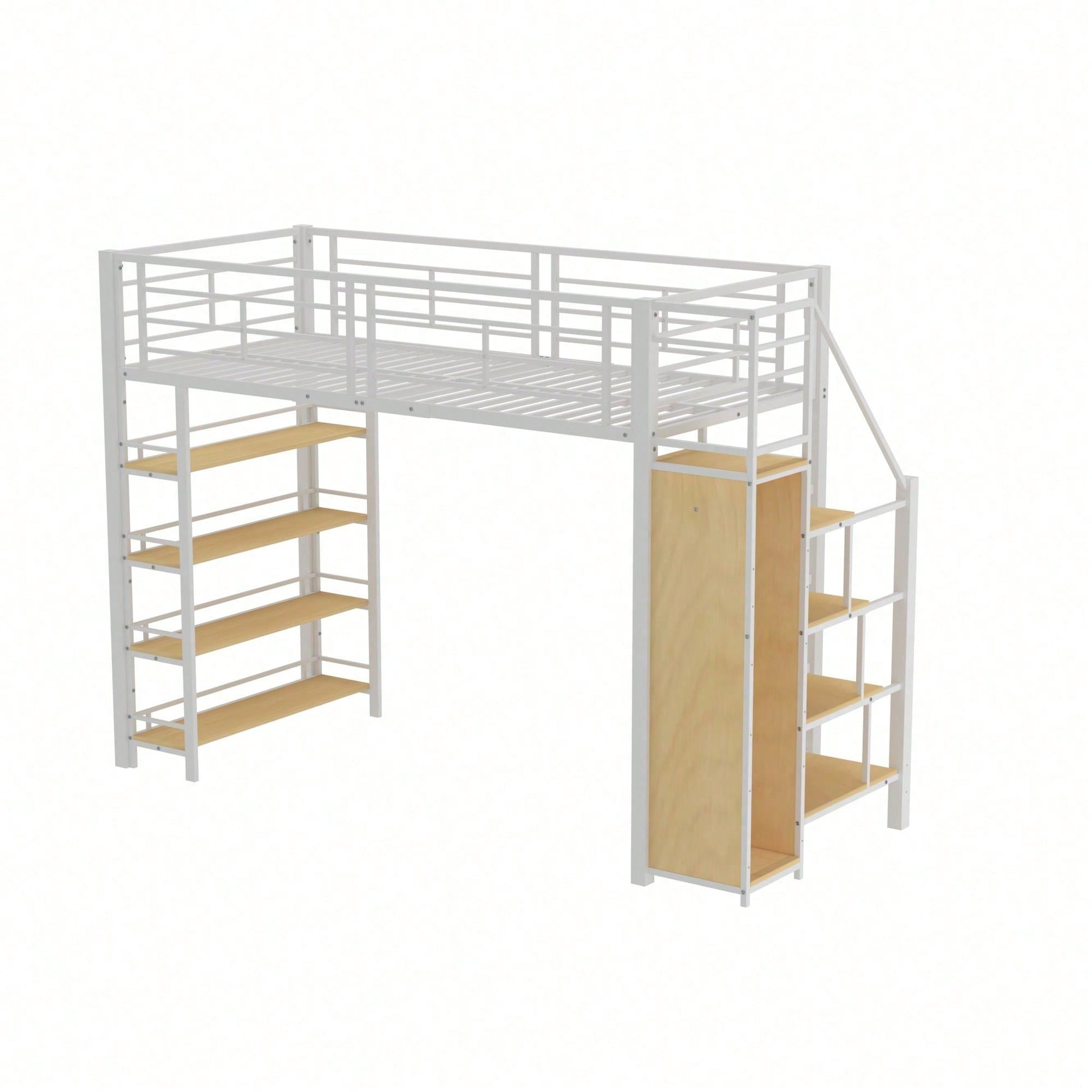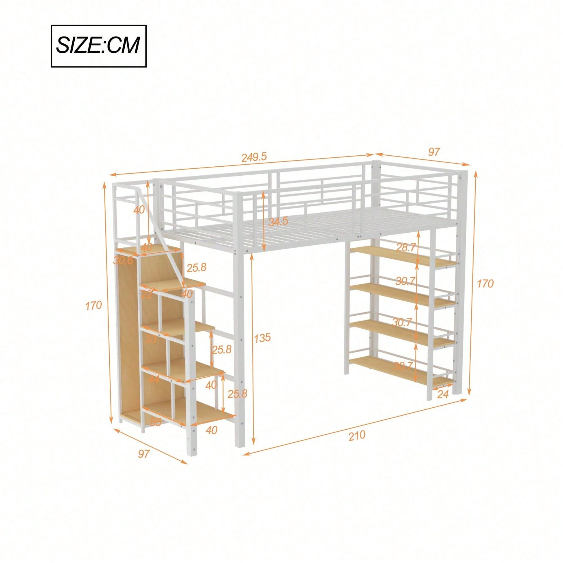 Especificaciones Información del producto Código del artículo: LDB00162AAK Tipo de producto: Artículo combinado Nombre del producto: Cama alta de 90 x 200 cm con escalera de , espacio de almacenamiento, armario pequeño, estantes y diseño de valla alta, cama individual, cama juvenil, color blanco Lugar de origen: China Color principal: Blanco Material principal: Metal Tamaño de la cama: 90 x 200 cm Dimensiones del producto Largo ensamblado (cm): 249,50 Ancho ensamblado (cm): 97,00 Alto ensamblado (cm): 170,00 Peso del producto (kg): 70,50 Tamaño del paquete Subartículo 1: MF325047AAK Cantidad del paquete: 1 111 x 39 x 22,5 cm 28 kg Subartículo 2: MF325046AAK Cantidad del paquete: 1 125 x 48 x 11 cm, 21 kg Subartículo 3: MF325045AAK Cantidad por paquete: 1 178 x 39 x 16,5 cm, 29 kg