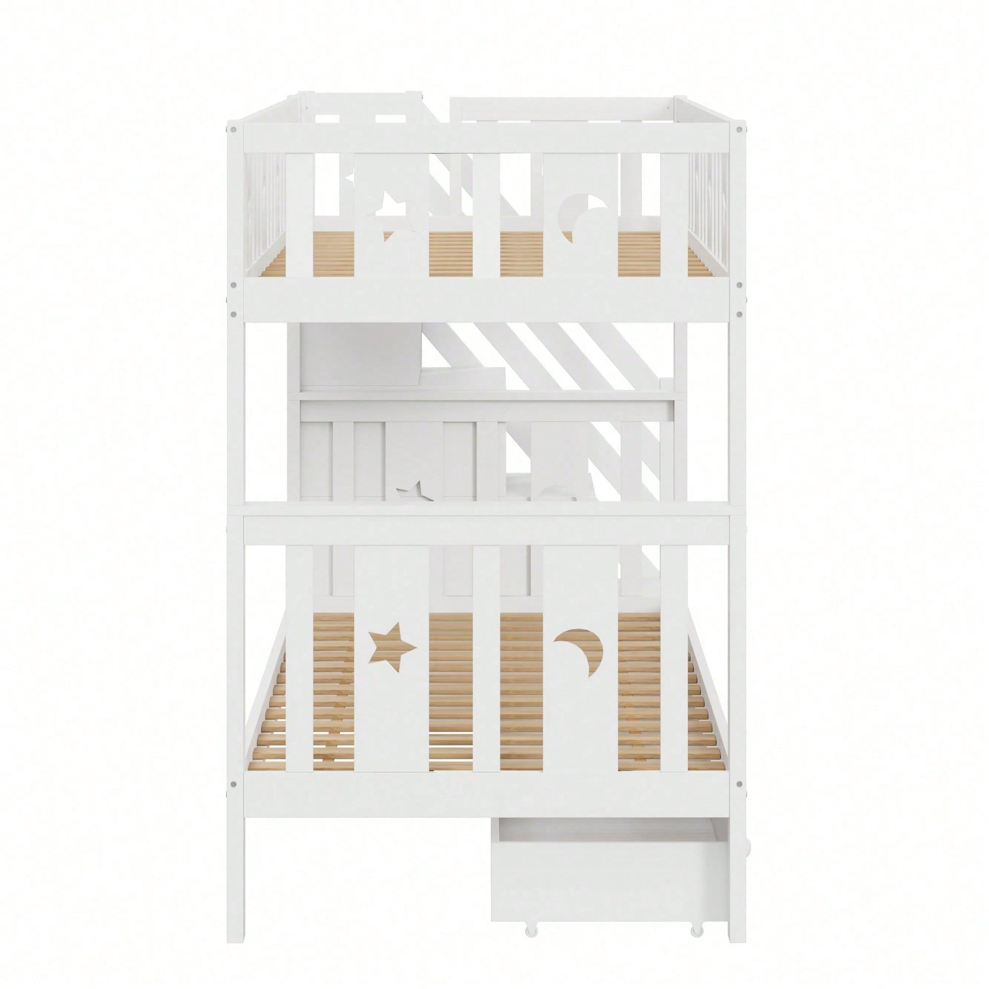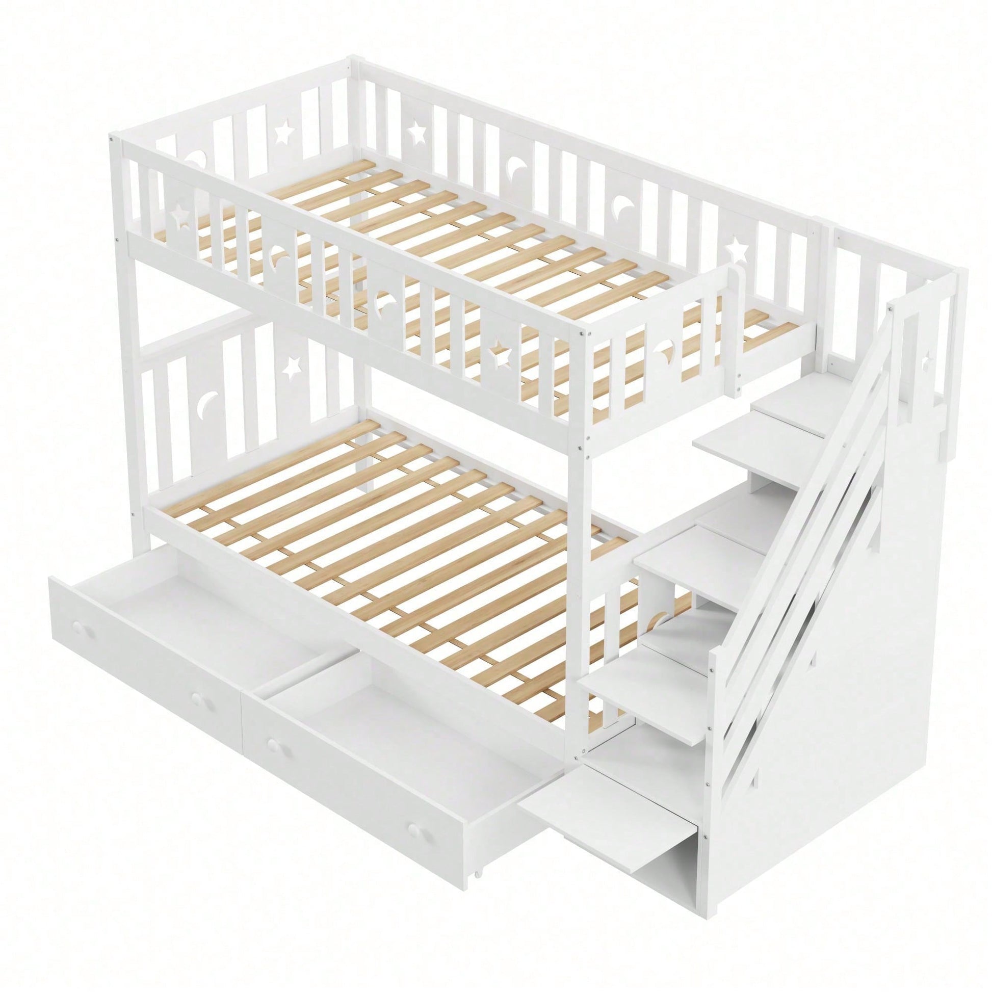 Especificaciones Información del producto Código del artículo: LDT00190AAK Tipo de producto: Artículo combinado Nombre del producto: Cama infantil de 90 x 200/90 x 200 cm, litera de madera maciza con escalera de , escalera de almacenamiento, dos cajones grandes y somier de láminas, color blanco Color principal: Blanco Material principal: Madera maciza Tamaño de la cama: 90 x 200 cm Dimensiones del producto Largo ensamblado (cm): 252,00 Ancho ensamblado (cm): 95,00 Alto ensamblado (cm): 160,00 Peso del producto (kg): 82,85 Tamaño del paquete Subartículo 1: N623P268174K Cantidad del paquete: 1 101,6 x 42,93 x 17,78 cm 25,65 kg Subartículo 2: WF322164AAK Cantidad por paquete: 1 128 * 43 * 16 cm 29,5 kg Subartículo 3: WF322163AAK Cantidad por paquete: 1 105 * 38 * 25 cm 30,75 kg Subartículo 4: WF322162AAK Cantidad por paquete: 1 199 * 30,5 * 20,5 cm 30,1 kg Características del producto Diseño multifuncional: la litera superior de esta litera infantil mide 90 x 200 cm y la inferior, 90 x 200 cm. Con un bonito estampado de estrellas y lunas, es una excelente opción para camas infantiles. Es ideal para habitaciones infantiles pequeñas y optimiza el espacio. Escalera de con espacio de almacenamiento: Esta litera de madera maciza incluye una escalera de con espacio de almacenamiento para facilitar la entrada y salida de los niños. La escalera se puede utilizar como práctico compartimento de almacenamiento. Amplio espacio de almacenamiento: Cada escalera de esta litera sirve como compartimento de almacenamiento con amplio espacio. Dos cajones extraíbles debajo de la cama facilitan la organización de la habitación. Diseñada para la de su hijo: la litera superior cuenta con barandillas de de 29 cm de altura, y tanto la litera superior como la inferior cuentan con somieres de láminas. Con una litera inferior y respaldo, esta litera de madera ofrece a su hijo la máxima . Además, las patas de pino macizo proporcionan mayor estabilidad y durabilidad. Estructura de litera fácil de montar: las dimensiones totales de la cama son 244 x 95 x 160 cm. Incluye somier de láminas (colchón no incluido). Esta litera infantil con escalera se envía desde Alemania en una caja de 3 piezas. A veces, tres cajas no llegan el mismo día. Por favor, espere de 2 a 3 días para la entrega.