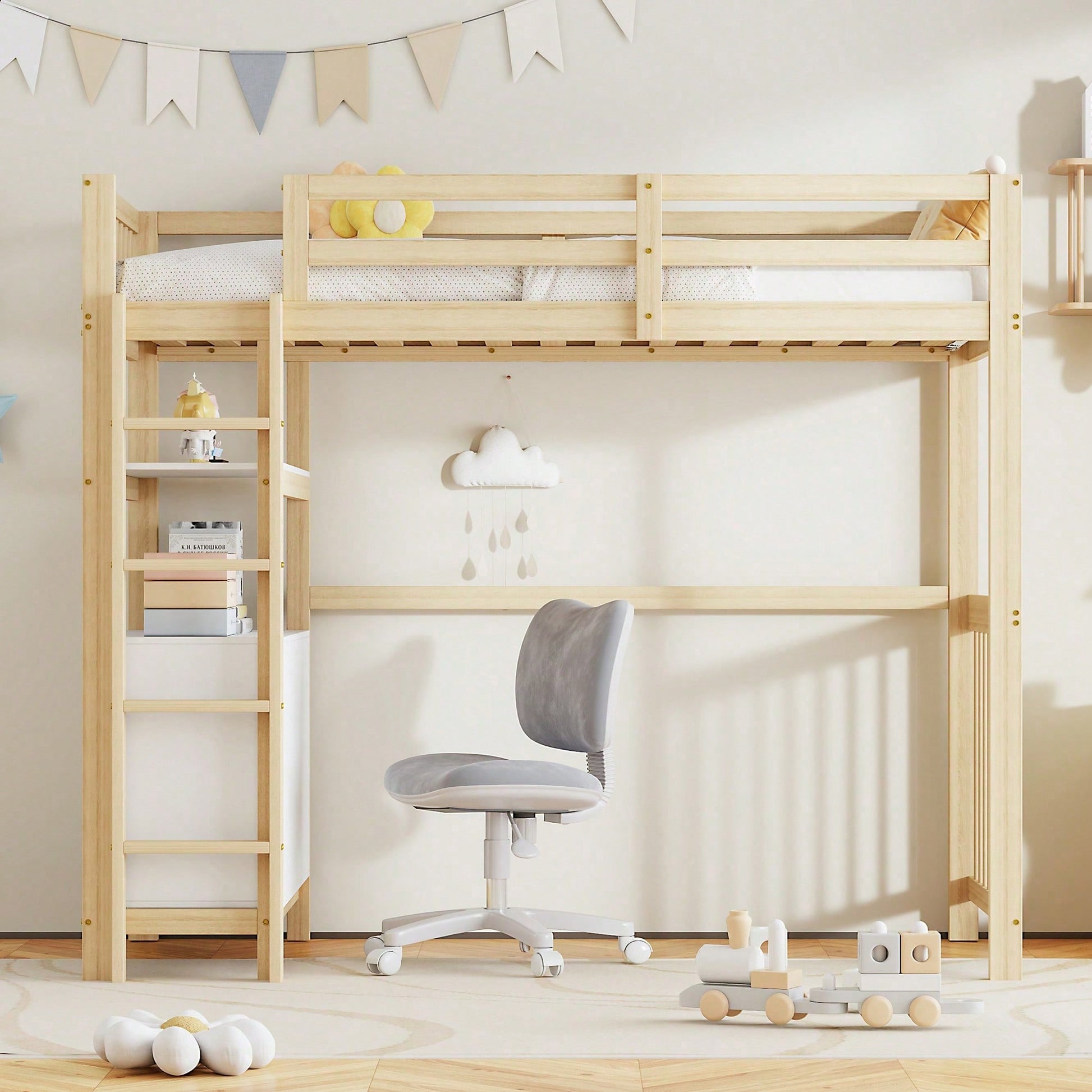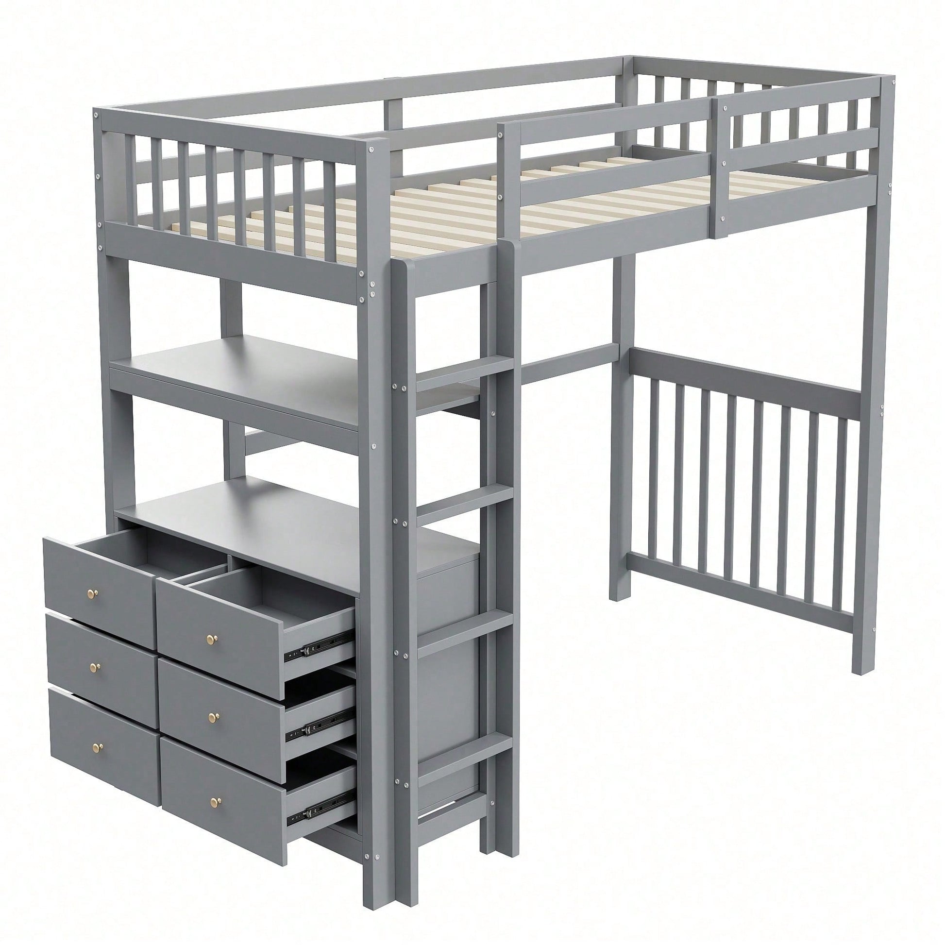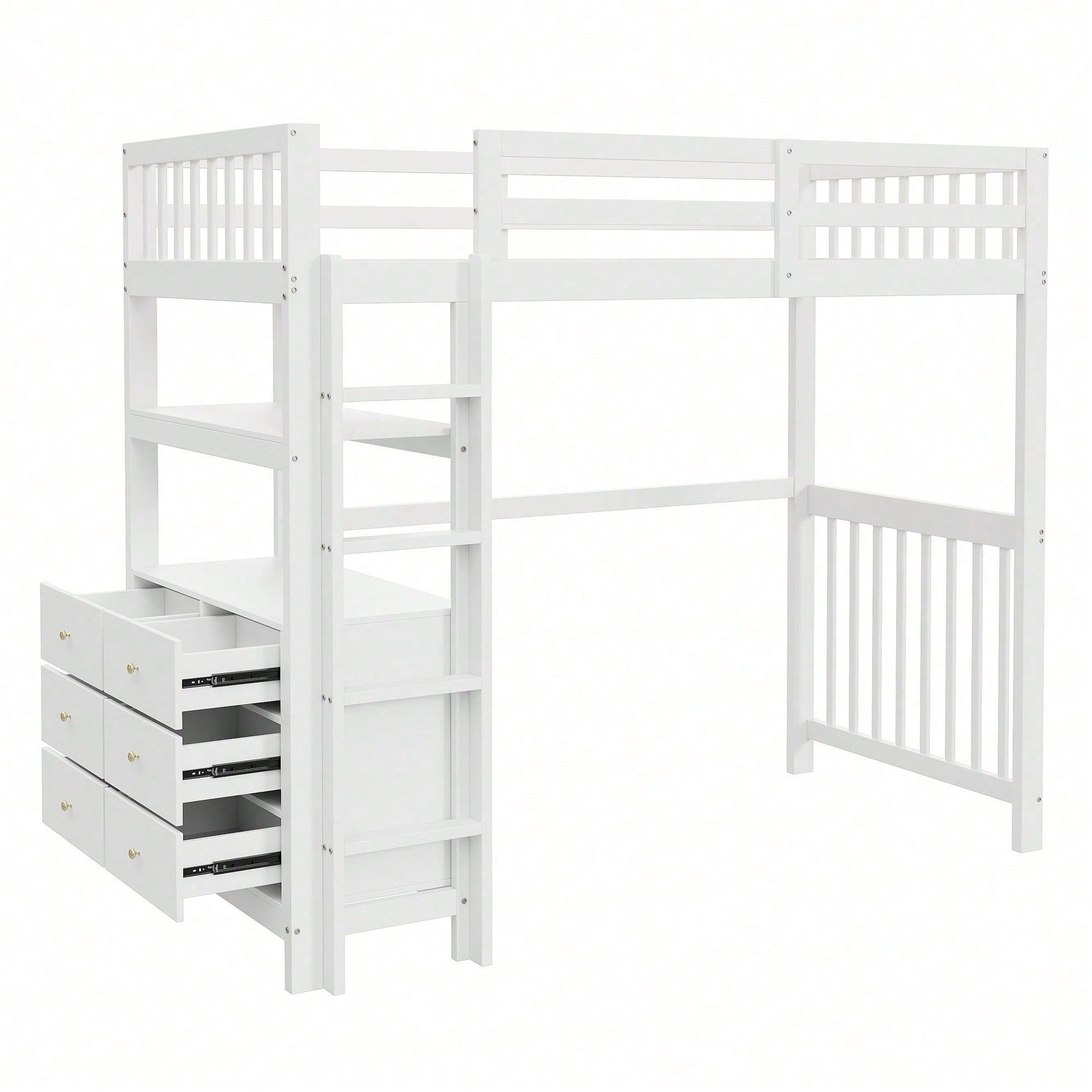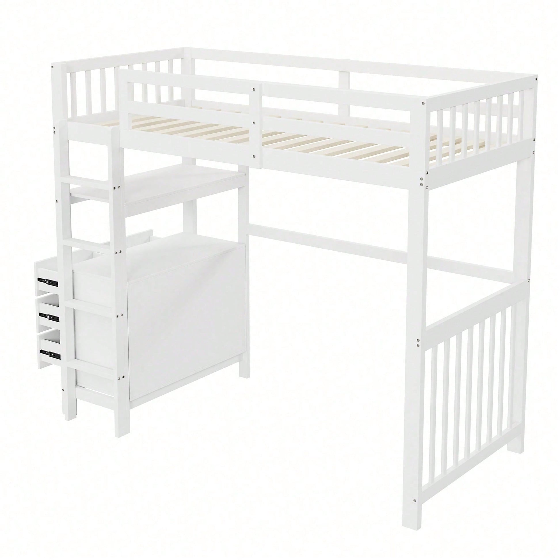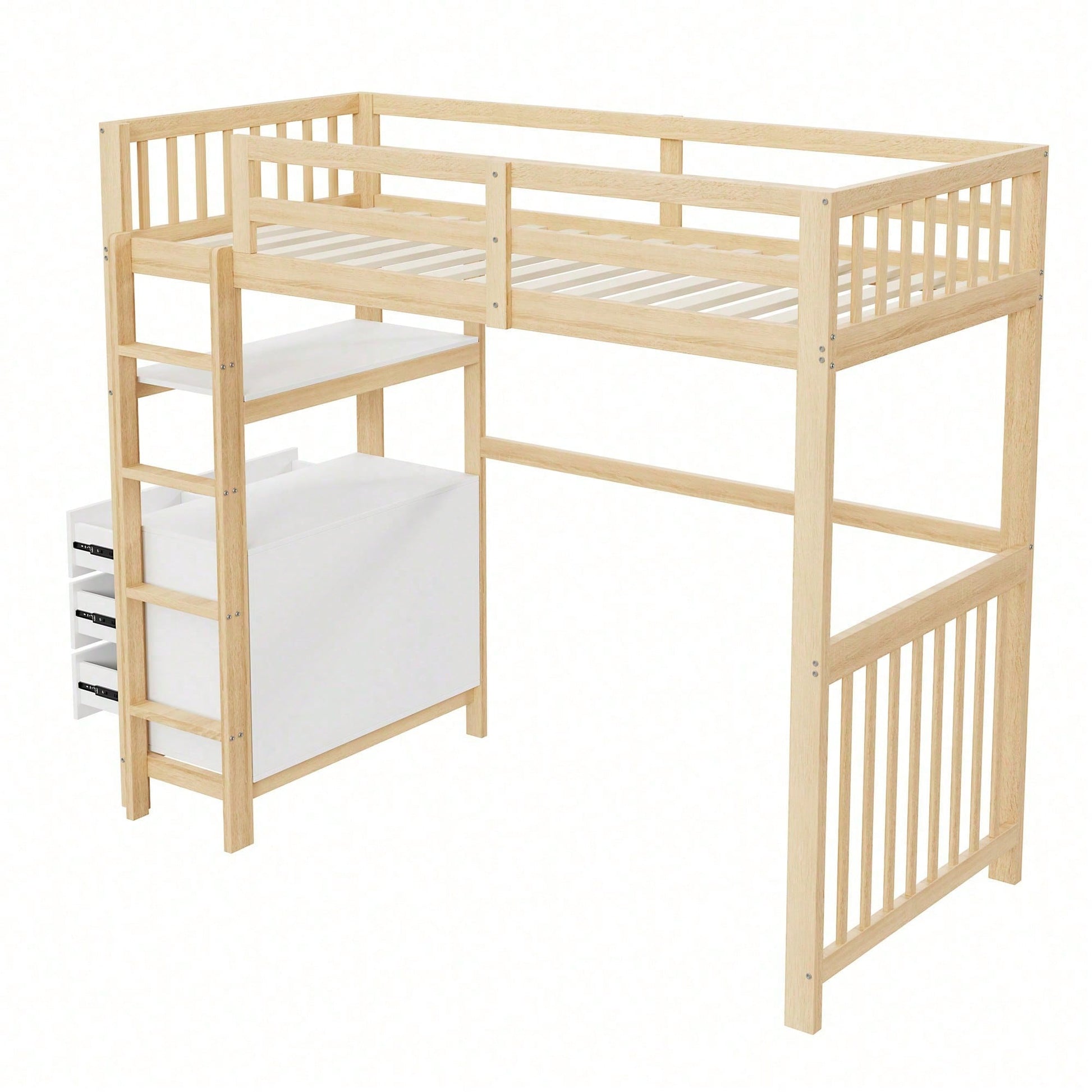 Especificaciones Información del producto Código del artículo: LDB00240AAK Tipo de producto: Artículo combinado Nombre del producto: Cama alta de 90 x 200 cm con escalera de vertical, cajones y estantes, diseño de valla alta, somier de láminas, cama de madera de pino, cama individual de madera blanca Color principal: Blanco Material principal: Madera Tamaño de la cama: 90 x 200 cm Dimensiones del producto Largo ensamblado (cm): 204,00 Ancho ensamblado (cm): 96,00 Alto ensamblado (cm): 175,00 Peso del producto (kg): 62,20 Tamaño del paquete Subartículo 1: N623P181743K Cantidad del paquete: 1 102,24 x 36,83 x 17,15 cm 18,1 kg Subartículo 2: N623P181742K Cantidad por paquete: 1 102,24 x 45,72 x 15,88 cm 23,6 kg Subartículo 3: N623P181737K Cantidad por paquete: 1 198 x 31 x 17 cm 28 kg Características del producto Escalera vertical de : Diseñada para facilitar su uso y , la escalera vertical cuenta con escalones antideslizantes y pasamanos resistentes para entrar y salir de la cama con . Almacenamiento: Armario y estante 2 en 1 para debajo de la cama. El armario cuenta con 6 cajones para guardar juguetes, ropa u otros artículos. Los estantes se pueden usar para guardar libros, plantas en macetas y otros artículos para ayudar a los niños a mantener su habitación ordenada. Duradera: El uso de madera de alta calidad garantiza una larga vida útil y la del usuario. Fácil de montar: Incluye instrucciones claras para un montaje sencillo, lo que facilita la instalación.