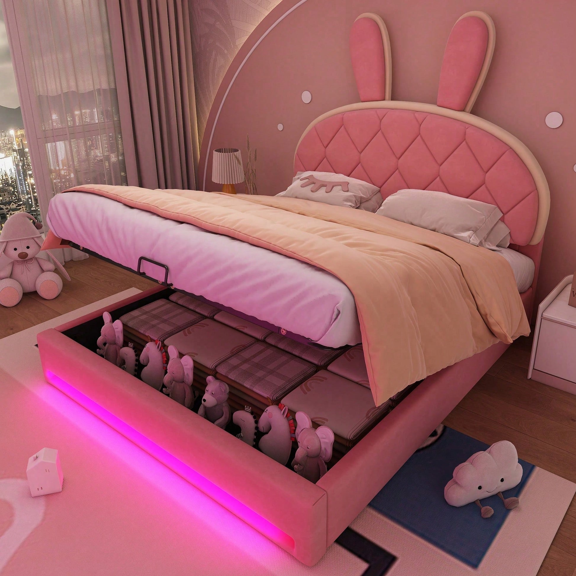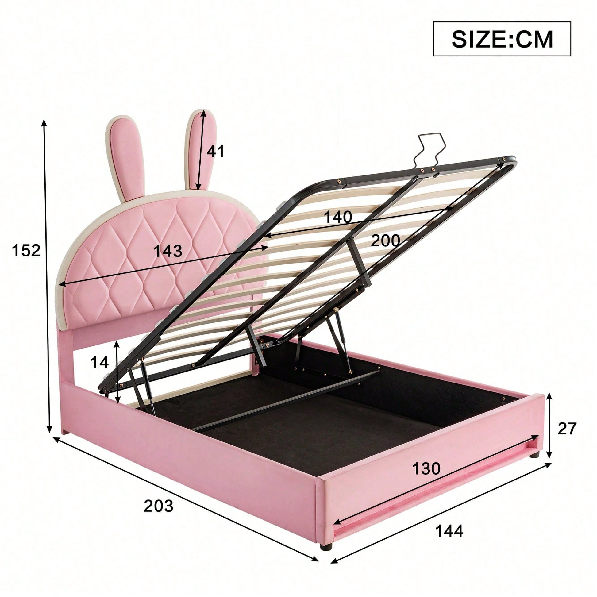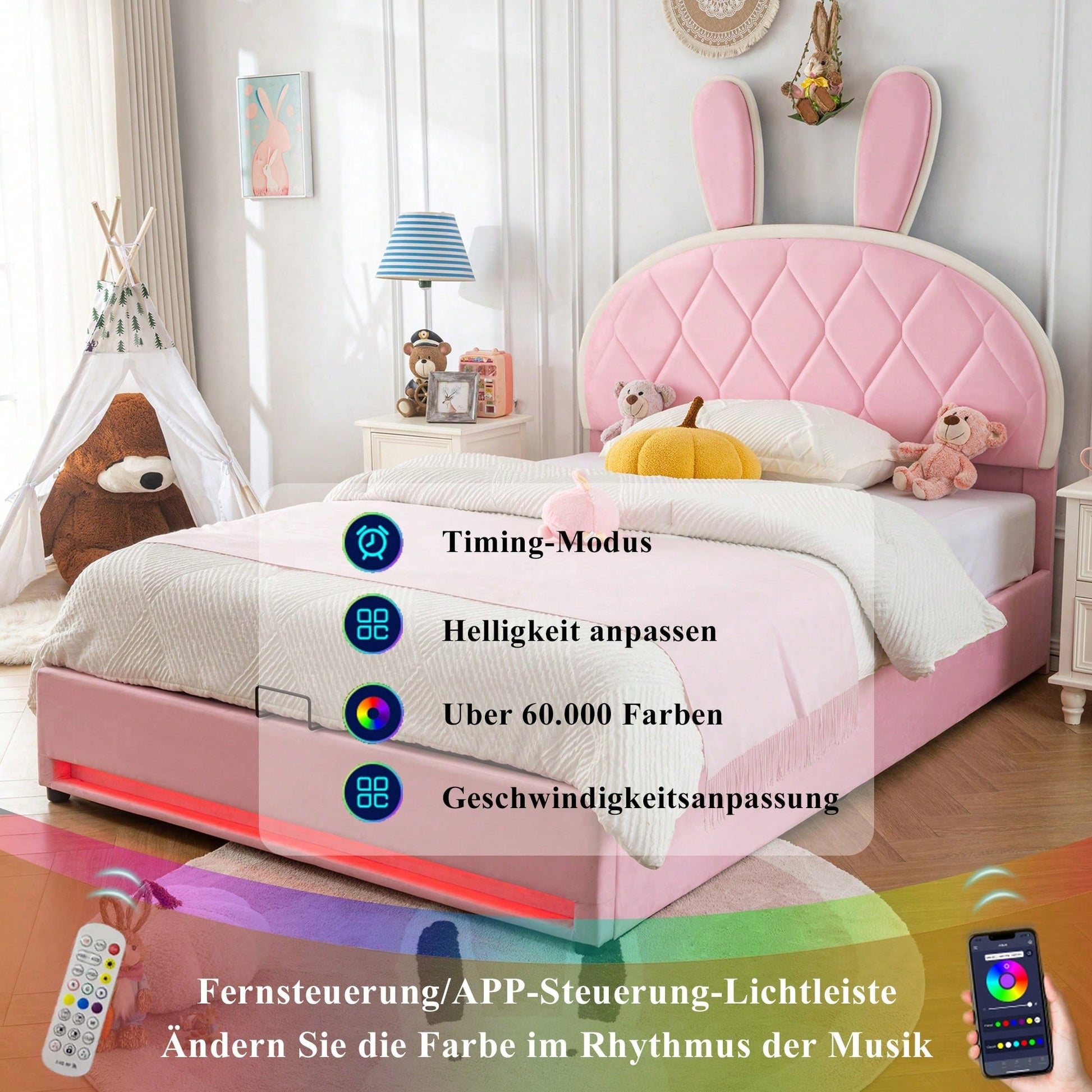 Características del producto Cama doble ajustable hidráulicamente: Esta cama doble cuenta con una innovadora función hidráulica y asas metálicas en los extremos que permiten levantar el marco sin esfuerzo. Esto crea un espacio de almacenamiento de fácil acceso debajo de la cama, ideal para guardar ropa de cama, mantas u otros artículos. Tira de luz LED: El extremo de la cama está equipado con una tira de luz LED. Puede controlar el color, el brillo y la temperatura de color de la tira mediante el control remoto o la aplicación, y también puede configurar diferentes modos de parpadeo para que la tira de luz LED se mueva al ritmo de la música. La tira de luz LED integrada mejora su experiencia de sueño e ilumina su dormitorio con una cálida luz. No solo ilumina su entorno, sino que también añade un toque de estilo al diseño general. Materiales de alta calidad: Esta cama tapizada está hecha de tela de terciopelo rosa de alta calidad, que no solo es hermosa, sino también segura y no se daña fácilmente durante el uso. Comodidad óptima: La cama está equipada con 12 somieres de láminas, un soporte metálico y dos patas metálicas que garantizan un soporte firme y un descanso . Instrucciones de cuidado: Utilice un paño suave de algodón o un cepillo para eliminar con cuidado el polvo y la suciedad de la superficie. Evite el uso de cepillos con cerdas duras o herramientas de limpieza ásperas, ya que podrían dañar el terciopelo. Evite salpicaduras de líquidos sobre el producto. En caso de derrames accidentales, límpielos inmediatamente con un paño limpio y absorbente. Fácil de instalar: Las instrucciones detalladas y las piezas completas le ayudarán a completar el montaje. El placer de la instalación le hará disfrutar aún más de la cama. Cama doble tapizada hidráulica, cama doble, cabecero ajustable, cabecero de conejo, terciopelo, rosa, 140 x 200 cm Medidas del colchón para esta cama tapizada: 140 x 200 cm; grosor recomendado del colchón: 20 cm. Esta cama doble tapizada hidráulica combina características innovadoras con un diseño moderno para crear un mueble de dormitorio que combina estilo, comodidad y un práctico espacio de almacenamiento. El somier de láminas con estructura metálica proporciona un soporte óptimo y garantiza una buena ventilación para un sueño reparador. La tela de terciopelo es suave al tacto, y la moderna estructura de cama no solo es estéticamente agradable, sino que también ofrece un amplio espacio de almacenamiento. Las tiras de luz LED a los pies de la cama crean un ambiente acogedor y moderno. Ventajas: 1. Amplio espacio de almacenamiento debajo de la cama 2. Tira de LED a los pies de la cama 3. Cómodo material de terciopelo 4. Estructura de cama con soporte metálico 5. Apto para varios estilos de decoración Peso y dimensiones Dimensiones totales: 203 x 144 x 152 cm Peso total: 44,5 kg Altura bajo la cama: 3 cm Colchones a juego (colchón no incluido): 140 x 200 cm (grosor del colchón ≤ 20 cm) Capacidad de carga: 220 kg