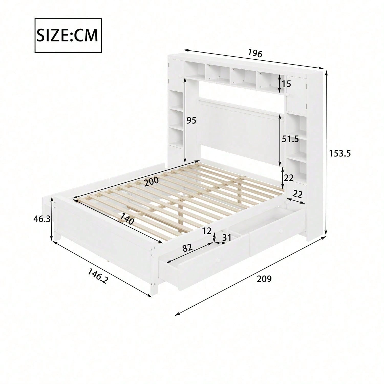 Información del producto Código del artículo: LDB00124AAK Tipo de producto: Artículo combinado Nombre del producto: Estructura de cama con espacio de almacenamiento de 140 x 200 cm, con 4 cajones y un amplio armario de almacenamiento, cama doble de madera maciza con somier de láminas, color blanco Color principal: Blanco Material principal: Madera maciza Dimensiones del producto Longitud (cm): 209.00 Ancho (cm): 196.00 Altura (cm): 153.50 Peso (kg): 25.00 Tamaño del paquete Subartículo 1: WF318425AAK Cantidad del paquete: 1 149 x 46 x 15.3 cm 29.5 kg Subartículo 2: WF318424AAK Cantidad del paquete: 1 158 x 30 x 19.5 29,25 kg Subartículo 3: WF318423AAK Cantidad por paquete: 1 198 x 32 x 16 cm, 29,5 kg