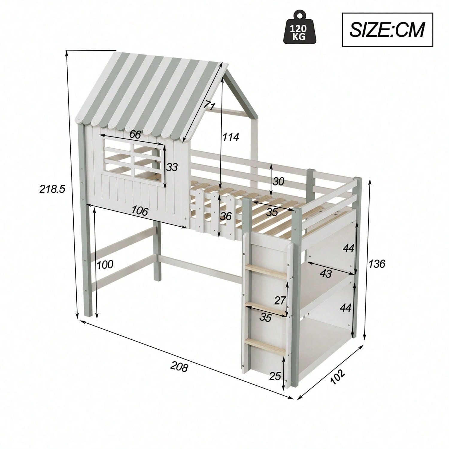 Especificaciones Información del producto Código del artículo: LDB00104AAF Tipo de producto: Artículo combinado Nombre del producto: Cama infantil de 90 x 200 cm, alta y baja, para niños y niñas, con forma de techo y escalera de , con compartimento de almacenamiento, multifuncional, de madera maciza con somier, verde Origen: China Color principal: Verde Material principal: Madera maciza Personalización: Sí * Este producto ofrece servicio de personalización. Para más información, contacte con el vendedor. Dimensiones del producto Longitud ensamblada (cm): 206.00 Ancho ensamblado (cm): 120.00 Altura ensamblada (cm): 218.50 Peso del producto (kg): 52.00 Tamaño del paquete Subartículo 1: WF318091AAF Cantidad por paquete: 1 178 * 24 * 18.5 cm 18.5 kg Subartículo 2: WF318090AAF Cantidad por paquete: 1 111.13 * 68.58 * 13.97 cm 24.45 kg Subartículo 3: WF318089AAF Cantidad por paquete: 1 99 * 30 * 19.5 cm 15.4 kg Características del producto Cama-casita: la forma única del techo está diseñada para crear fácilmente un espacio acogedor y privado para su hijo. Con unas medidas de 90 x 200 cm, esta cuna acompañará a tu hijo desde la infancia hasta la edad adulta. Cunas divertidas: Esta cuna única está inspirada en la heladería favorita de los niños. Con sus vibrantes colores y diseño de techo, es sin duda el mejor regalo para niños. Diseño multifuncional: Esta cuna de madera maciza no solo ofrece un lugar acogedor para dormir, sino que también ofrece espacio de juego y almacenamiento para maximizar el espacio. Diseñada para la de tu hijo: La estructura de esta cama alta está hecha de madera maciza de pino y los paneles decorativos son de MDF de alta calidad para mayor y durabilidad. La litera superior está equipada con una barandilla de de 30 cm de altura y los 25 listones de madera proporcionan un soporte resistente para cargas de hasta 120 kg. Para que tu hijo duerma profundamente. Estructura de cama fácil de montar: Las dimensiones totales de la cama son 208 x 120 x 218,5 cm con somier de láminas (colchón no incluido). Esta cama infantil con escalera de se enviará desde Alemania en tres paquetes; a veces, los tres paquetes no llegan el mismo día. Por favor, espere dos o tres días más.