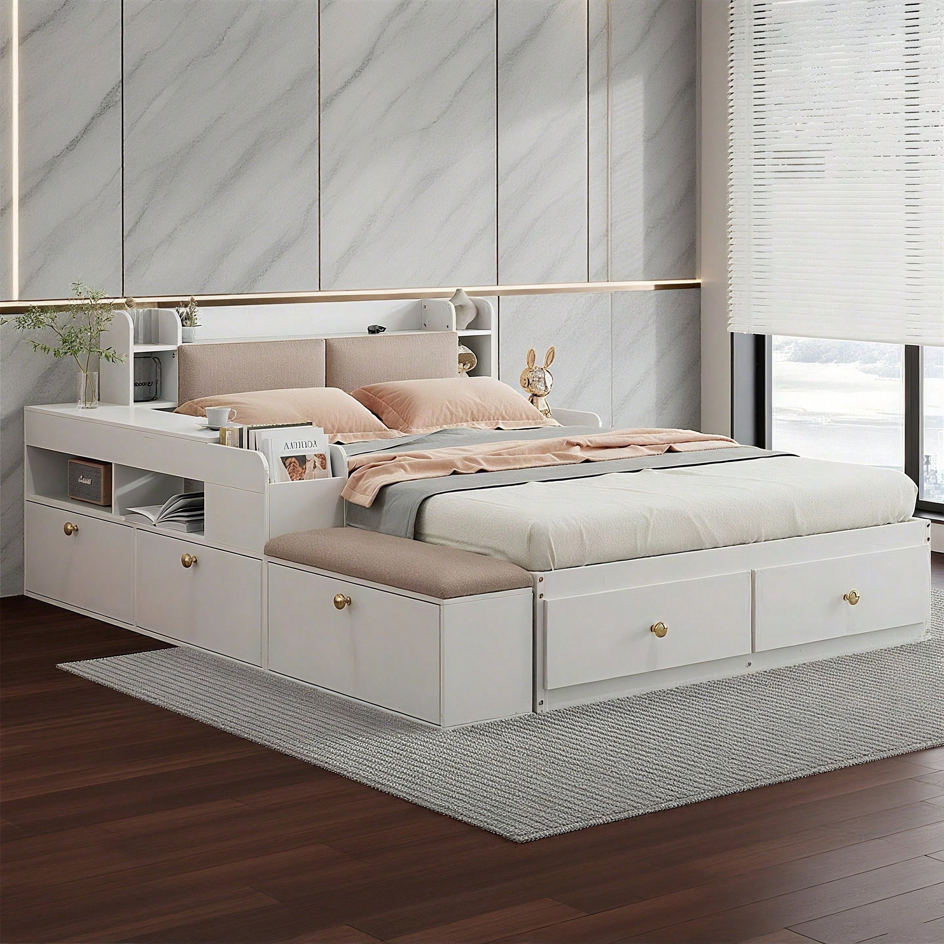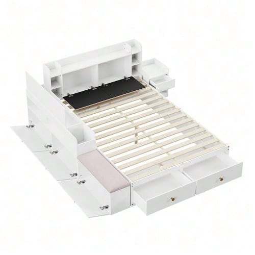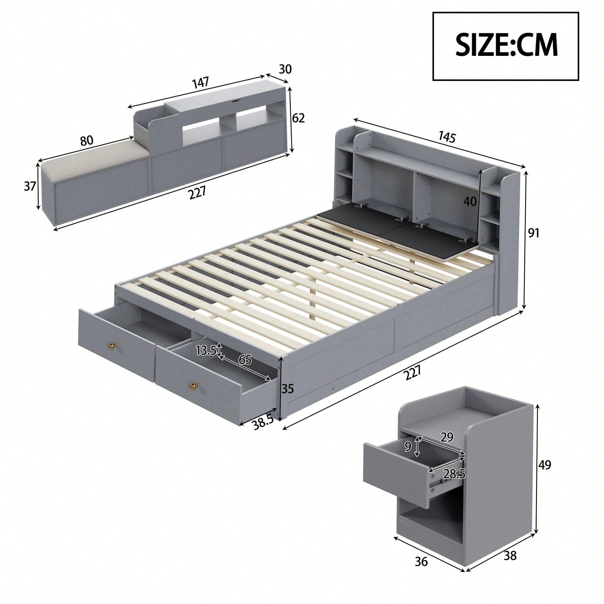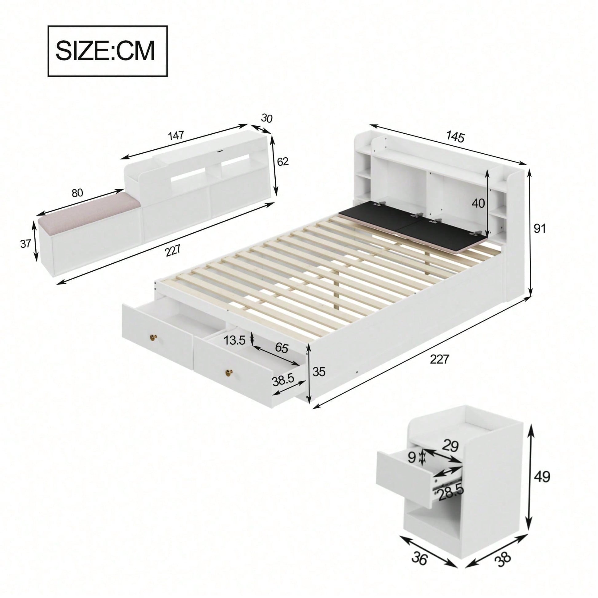 Especificaciones Información del producto Código del artículo: LDB00183AAK Tipo de producto: Artículo combinado Nombre del producto: Cama combinada de madera maciza de 140 x 200 cm, cabecero con compartimento de almacenamiento integrado, cajones, mesita de noche, armario de almacenamiento y sofá banco, cama doble con almacenamiento, tatami, color blanco Origen: China Color principal: Blanco Material principal: Madera Tamaño de la cama: 140 x 200 cm Dimensiones del producto Largo ensamblado (cm): 227,00 Ancho ensamblado (cm): 145,00 Alto ensamblado (cm): 91,00 Peso del producto (kg): 99,00 Tamaño del paquete Subartículo 1: N623P177270K Cantidad del paquete: 1 196,5 x 32,5 x 17,5 cm (29,2 pulgadas) kg Subartículo 2: N623P177271K Cantidad por paquete: 1 79,5 x 45,5 x 31 cm 24,2 kg Subartículo 3: N623P177272K Cantidad por paquete: 1 156,5 x 36 x 16,5 cm 29,5 kg Subartículo 4: N623P177273K Cantidad por paquete: 1 90,5 x 36,5 x 17 cm 13,1 kg Subartículo 5: N623P177274K Cantidad por paquete: 1 150 x 24,5 x 24,5 cm 13,05 kg Características del producto Cama combinada de madera maciza de alta calidad: fabricada con madera maciza de alta calidad, esta cama es duradera y de una belleza atemporal. Realza la estética de cualquier dormitorio y ofrece un soporte y una estabilidad duraderos. Este conjunto de cama con aparadores, banco de sofá con espacio de almacenamiento y mesita de noche pequeña satisface tus diversas necesidades de una cama con un diseño único. Cabecera versátil con cojines: esta cama combinada cuenta con una cabecera tapizada con suaves cojines para una comodidad máxima, perfecta para sentarse, leer o relajarse. Además, con compartimentos de almacenamiento integrados, la cabecera es perfecta para tener a mano objetos esenciales como libros, gafas o dispositivos electrónicos, manteniendo así todo organizado. Con aparador, banco de sofá y mesita de noche: esta cama incluye un aparador de almacenamiento semiabierto a juego en el lateral de la cama, que se integra perfectamente con el diseño de la cama y ofrece espacio para una lámpara, libros o artículos de noche. Un banco de sofá y una mesita de noche pequeña están disponibles para almacenamiento adicional y estanterías. Amplio espacio de almacenamiento: esta cama combinada de madera maciza con dos cajones a los pies de la cama te ofrece la oportunidad de guardar tus pertenencias cómodamente. Además, el aparador, el banco y la mesita de noche junto a la cama ofrecen amplio espacio de almacenamiento. Capacidad de carga estable: La estructura de la cama consta de un somier de láminas y soportes, lo que proporciona un soporte firme y resistente para cargas de hasta 200 kg. Su estructura robusta y duradera garantiza un uso prolongado y estabilidad. Las dimensiones totales de la cama son 227 x 145 x 91 cm con somier (sin colchón). Esta cama combinada se envía desde Alemania en cinco paquetes; en ocasiones, es posible que cinco paquetes no lleguen el mismo día. El plazo de entrega es de dos a tres días.