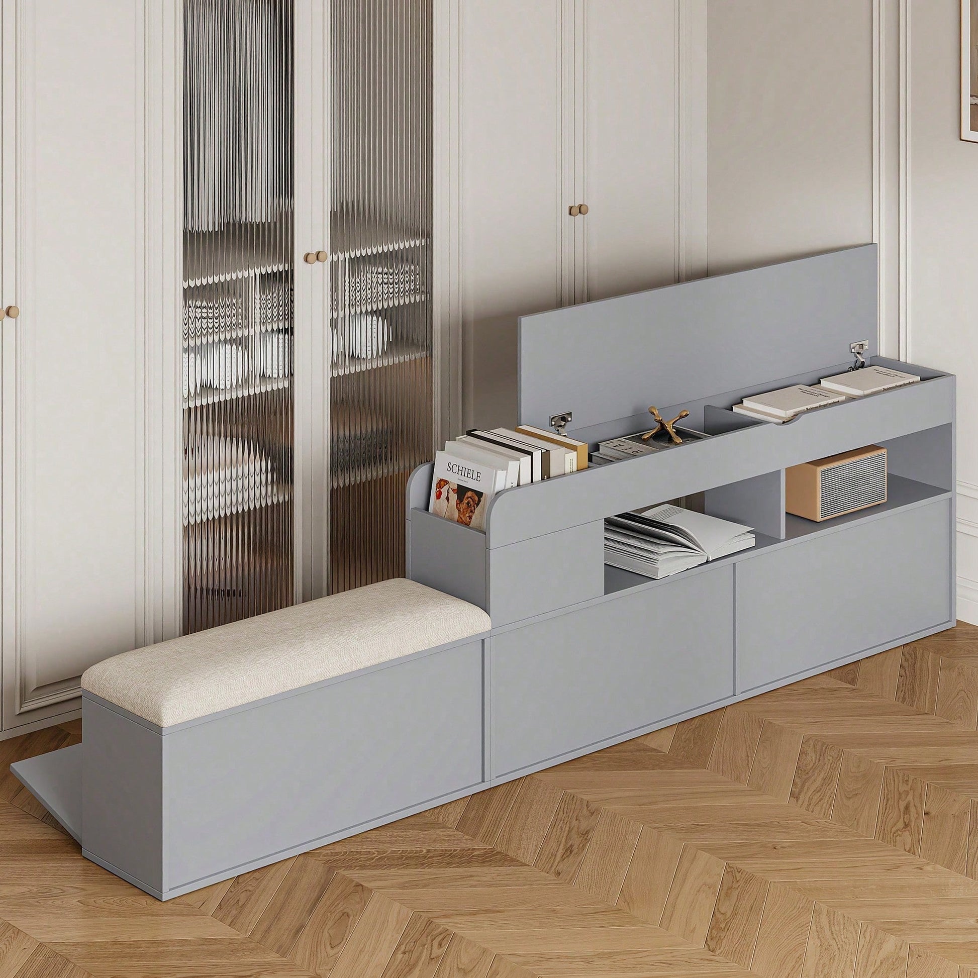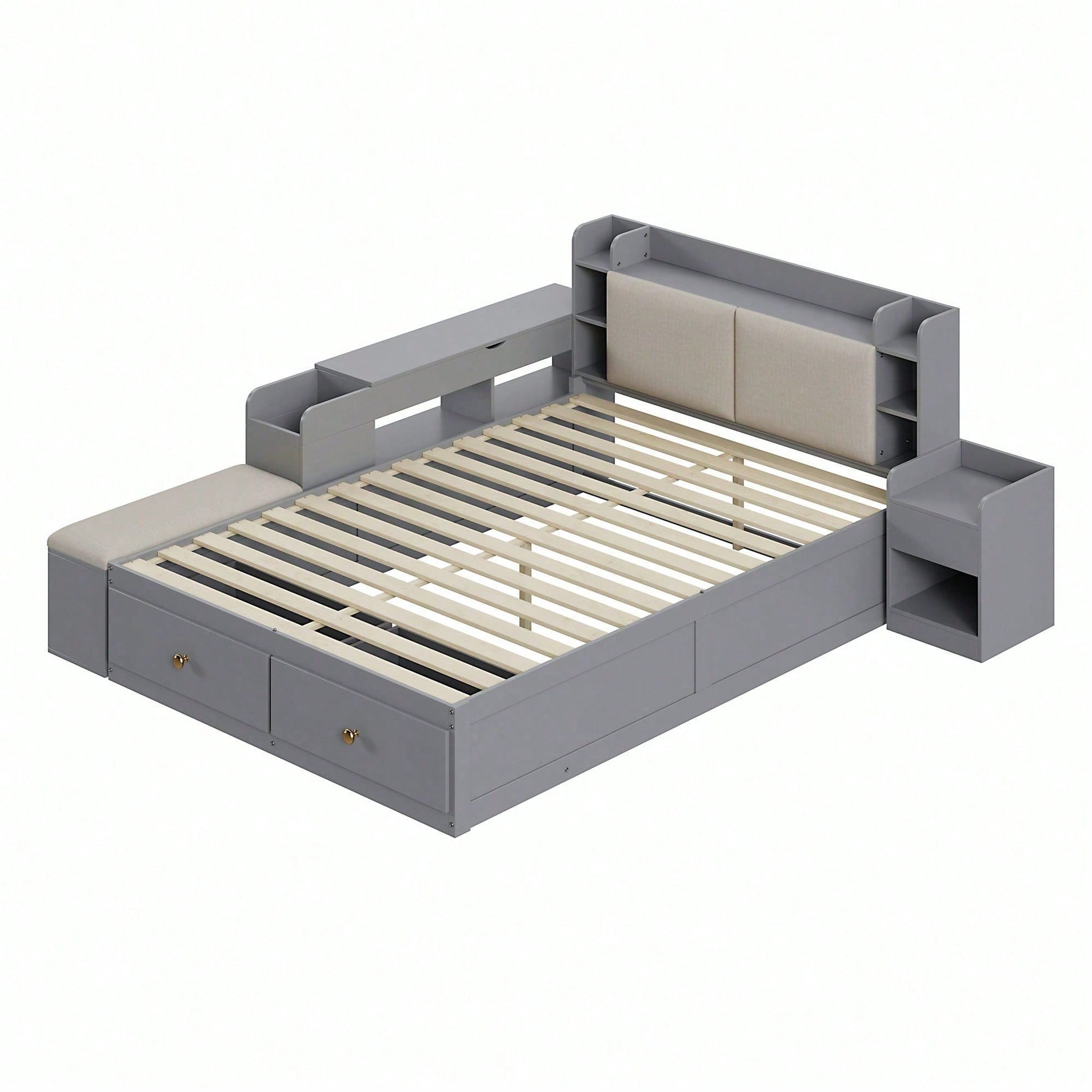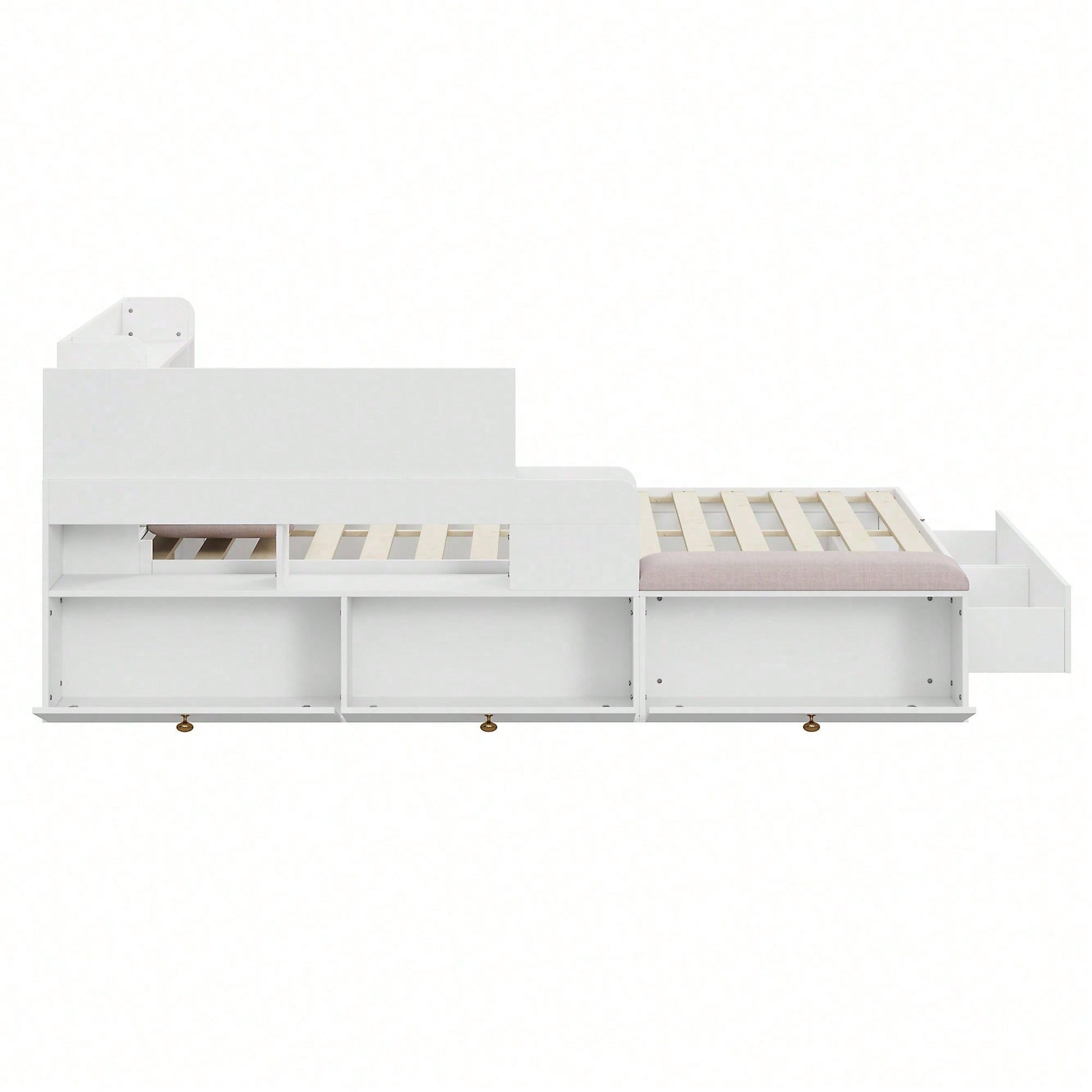 Especificaciones Información del producto Código del artículo: LDB00183AAK Tipo de producto: Artículo combinado Nombre del producto: Cama combinada de madera maciza de 140 x 200 cm, cabecero con compartimento de almacenamiento integrado, cajones, mesita de noche, armario de almacenamiento y sofá banco, cama doble con almacenamiento, tatami, color blanco Origen: China Color principal: Blanco Material principal: Madera Tamaño de la cama: 140 x 200 cm Dimensiones del producto Largo ensamblado (cm): 227,00 Ancho ensamblado (cm): 145,00 Alto ensamblado (cm): 91,00 Peso del producto (kg): 99,00 Tamaño del paquete Subartículo 1: N623P177270K Cantidad del paquete: 1 196,5 x 32,5 x 17,5 cm (29,2 pulgadas) kg Subartículo 2: N623P177271K Cantidad por paquete: 1 79,5 x 45,5 x 31 cm 24,2 kg Subartículo 3: N623P177272K Cantidad por paquete: 1 156,5 x 36 x 16,5 cm 29,5 kg Subartículo 4: N623P177273K Cantidad por paquete: 1 90,5 x 36,5 x 17 cm 13,1 kg Subartículo 5: N623P177274K Cantidad por paquete: 1 150 x 24,5 x 24,5 cm 13,05 kg Características del producto Cama combinada de madera maciza de alta calidad: fabricada con madera maciza de alta calidad, esta cama es duradera y de una belleza atemporal. Realza la estética de cualquier dormitorio y ofrece un soporte y una estabilidad duraderos. Este conjunto de cama con aparadores, banco de sofá con espacio de almacenamiento y mesita de noche pequeña satisface tus diversas necesidades de una cama con un diseño único. Cabecera versátil con cojines: esta cama combinada cuenta con una cabecera tapizada con suaves cojines para una comodidad máxima, perfecta para sentarse, leer o relajarse. Además, con compartimentos de almacenamiento integrados, la cabecera es perfecta para tener a mano objetos esenciales como libros, gafas o dispositivos electrónicos, manteniendo así todo organizado. Con aparador, banco de sofá y mesita de noche: esta cama incluye un aparador de almacenamiento semiabierto a juego en el lateral de la cama, que se integra perfectamente con el diseño de la cama y ofrece espacio para una lámpara, libros o artículos de noche. Un banco de sofá y una mesita de noche pequeña están disponibles para almacenamiento adicional y estanterías. Amplio espacio de almacenamiento: esta cama combinada de madera maciza con dos cajones a los pies de la cama te ofrece la oportunidad de guardar tus pertenencias cómodamente. Además, el aparador, el banco y la mesita de noche junto a la cama ofrecen amplio espacio de almacenamiento. Capacidad de carga estable: La estructura de la cama consta de un somier de láminas y soportes, lo que proporciona un soporte firme y resistente para cargas de hasta 200 kg. Su estructura robusta y duradera garantiza un uso prolongado y estabilidad. Las dimensiones totales de la cama son 227 x 145 x 91 cm con somier (sin colchón). Esta cama combinada se envía desde Alemania en cinco paquetes; en ocasiones, es posible que cinco paquetes no lleguen el mismo día. El plazo de entrega es de dos a tres días.