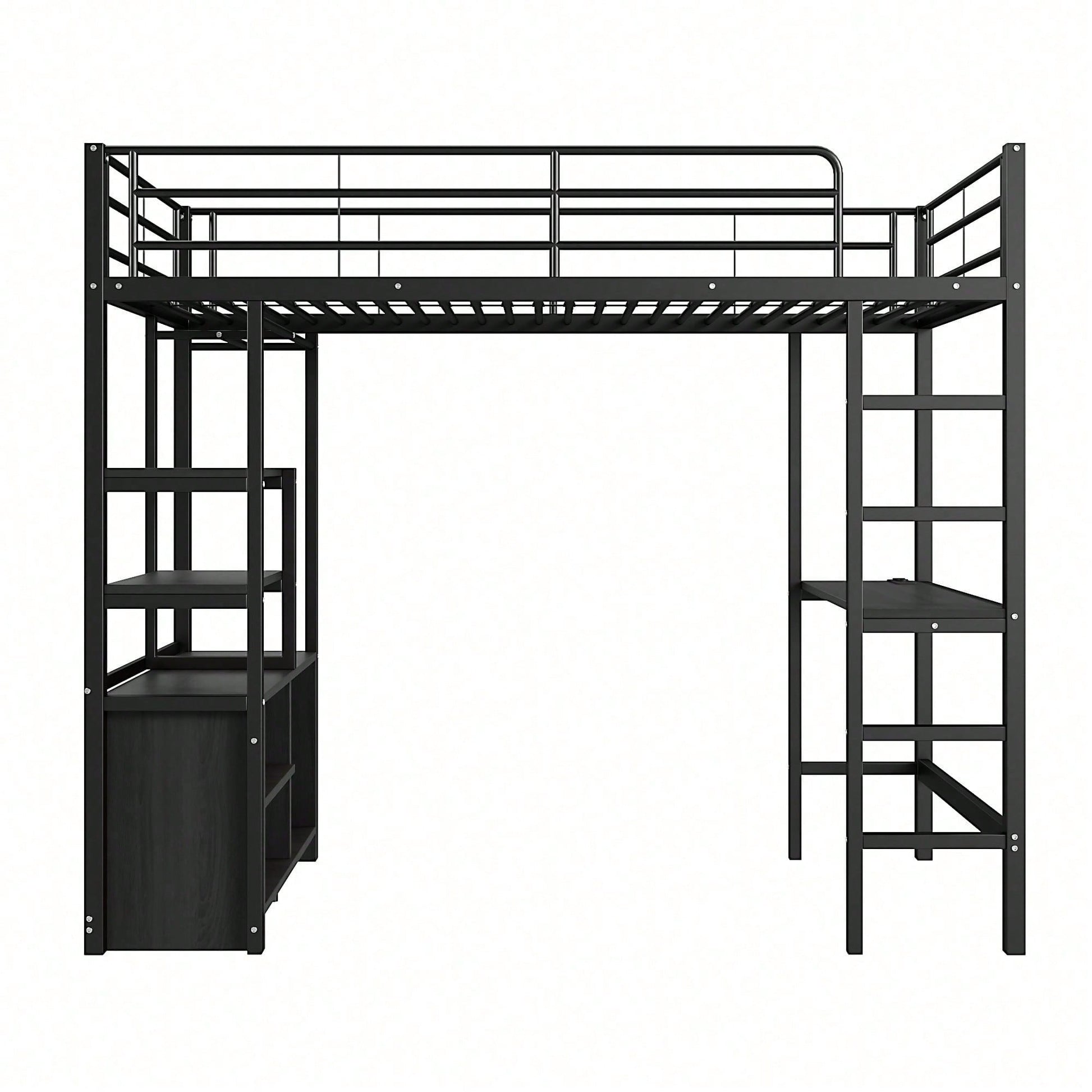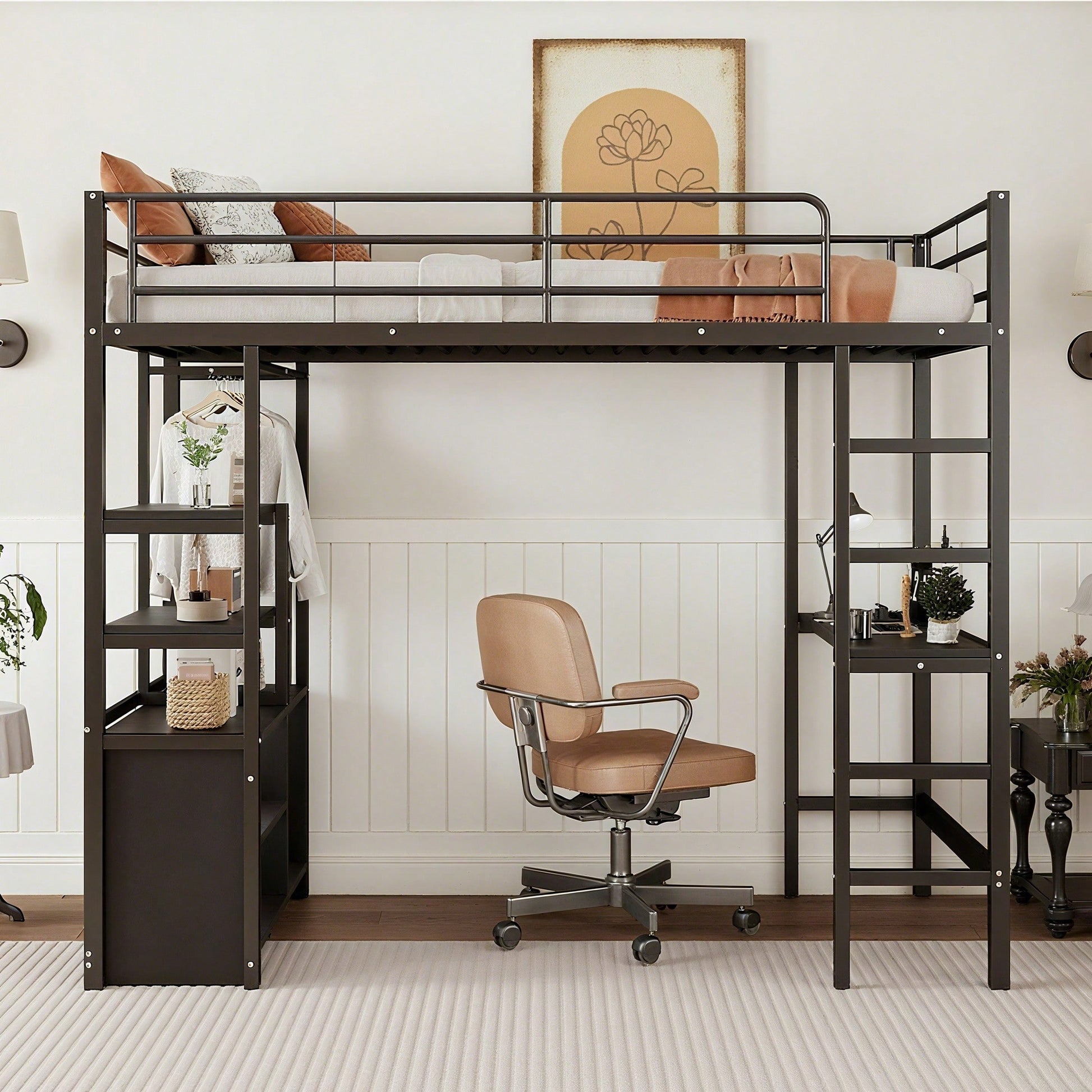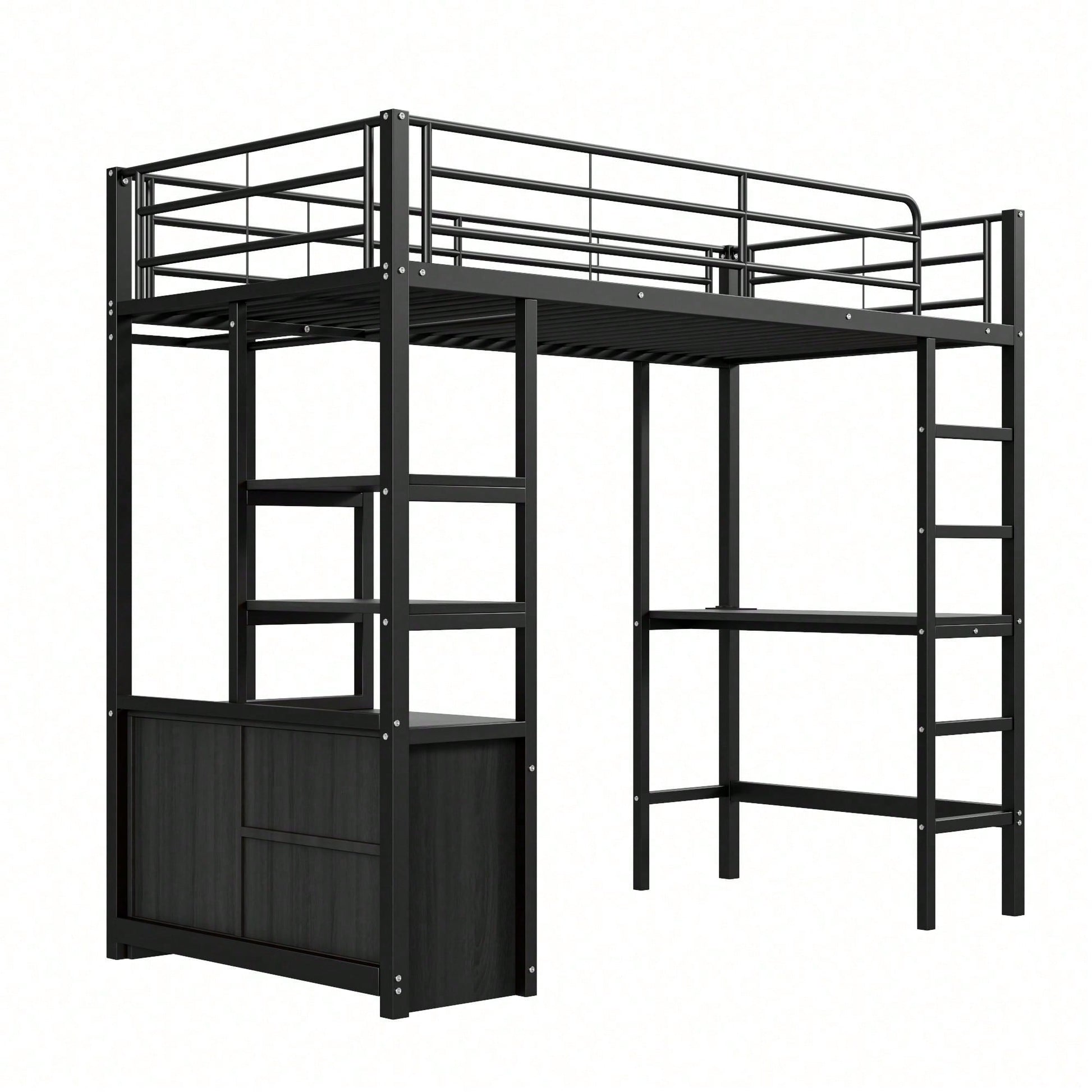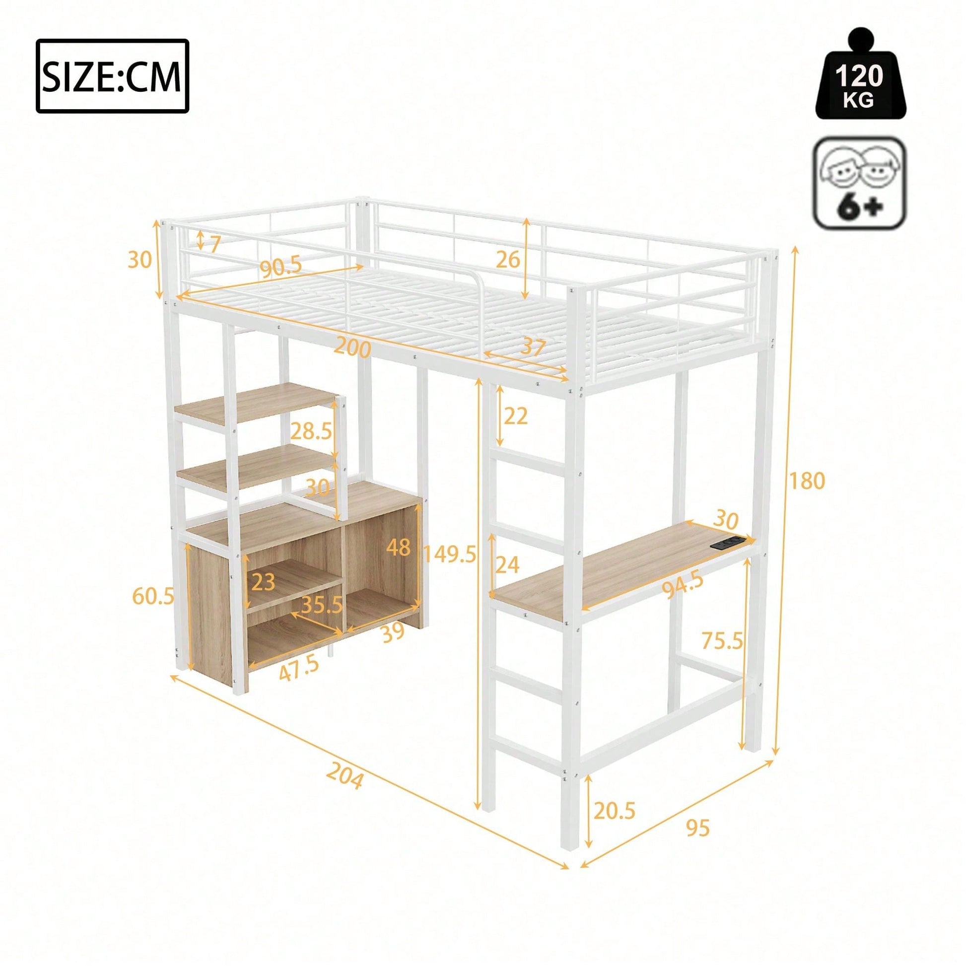 Especificaciones Información del producto Código de artículo: WX000129AAB Tipo de producto: Artículo combinado Nombre del producto: Cama alta, 90 x 200 cm, sin colchón, con escritorio, con toma de corriente y puerto USB, varios estantes, armario abierto, barandilla, escalera, estructura de hierro, color negro Color principal: Negro Material principal: Metal Tamaño de la cama: 90 cm x 200 cm Dimensiones del producto Largo ensamblado (cm): 204.00 Ancho ensamblado (cm): 95.00 Alto ensamblado (cm): 180.00 Peso del producto (kg): 57.50 Tamaño del paquete Subartículo 1: N636P187570B Cantidad del paquete: 1 104.5 x 48.01 x 22 cm 28.7 kg Subartículo 2: N636P187568B Cantidad por paquete: 1 198,48 x 38,48 x 11 cm 28,2 kg Características del producto Materiales de alta calidad: Esta cama alta está fabricada con una robusta estructura de hierro y MDF, por lo que no tendrá que preocuparse de que se derrumbe. Los gruesos tubos de acero la hacen más estable, y el MDF es resistente y duradero para un uso prolongado. Funcionalidad: Nuestras camas altas están equipadas con escritorio, toma de corriente y puerto USB para trabajar o estudiar. : Esta cama alta cuenta con la certificación EN747 y es apta para niños a partir de seis años. Una robusta barandilla alrededor de la litera superior evita caídas accidentales y garantiza un sueño reparador. Gran capacidad de almacenamiento: Esta cama alta está equipada con estantes y armarios abiertos para facilitar el almacenamiento y la organización, optimizando al máximo el espacio. La cama se envía en dos paquetes desde Alemania. A veces los paquetes llegan en momentos diferentes, pero para garantizar que se cumplan sus expectativas, tenga paciencia o comuníquese con nuestro amable servicio de atención al cliente.