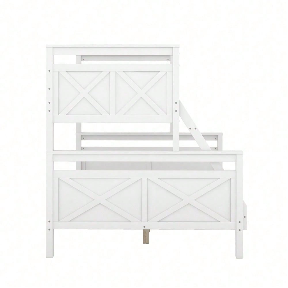 Descripción Litera con escalera convertible en 2 camas individuales Con camas de diferentes tamaños en un solo producto, esta litera aprovecha al máximo el espacio limitado. Su elegante diseño realzará tu habitación. Está hecha de pino y MDF para mayor estabilidad y robustez. La escalera integrada también contribuye a su estabilidad, permitiendo que tu hijo duerma plácidamente. Una escalera inclinada es más fácil de subir que una vertical. Si tienes suficiente espacio en tu apartamento, esta litera también puede usarse como dos camas individuales, ¡una gran ventaja! ¡Llévatela a casa ya! Descripción + Dimensiones Material de la cama: Pino + MDF Tamaño: 90 x 200 cm Color: Blanco/Gris Número de paquetes: 2 Requiere ensamblaje: Sí Origen: China Dimensiones del producto: 205 x 145,5 x 162 cm Dimensiones del paquete: Para obtener información detallada, consulta las especificaciones. Descripción + Dimensiones Material de la cama: Madera de pino + MDF Tamaño: 90 x 200 cm Color: Blanco/Gris Número de paquetes: 2 Requiere ensamblaje: Sí Origen: China Dimensiones del producto: 205 x 145,5 x 162 cm Dimensiones del paquete: Para obtener información detallada, consulte las especificaciones. Dimensiones de la cama: 90 (140) x 200 cm Altura total: 162 cm Capacidad de peso: 120 kg Grosor recomendado del colchón (sin colchón): 10 cm Notas ※ Debido a la medición manual, puede haber un margen de error de 2-3 cm. ※ Todas las imágenes del producto se toman de productos reales, pero pueden producirse algunas diferencias de color debido a la influencia de la luz solar y otros factores. ※ Este producto se dividirá en dos paquetes para su entrega. Es posible que no lleguen al mismo tiempo. Por favor, espere pacientemente. ※ Si tiene alguna pregunta durante la instalación, comuníquese con nosotros lo antes posible.