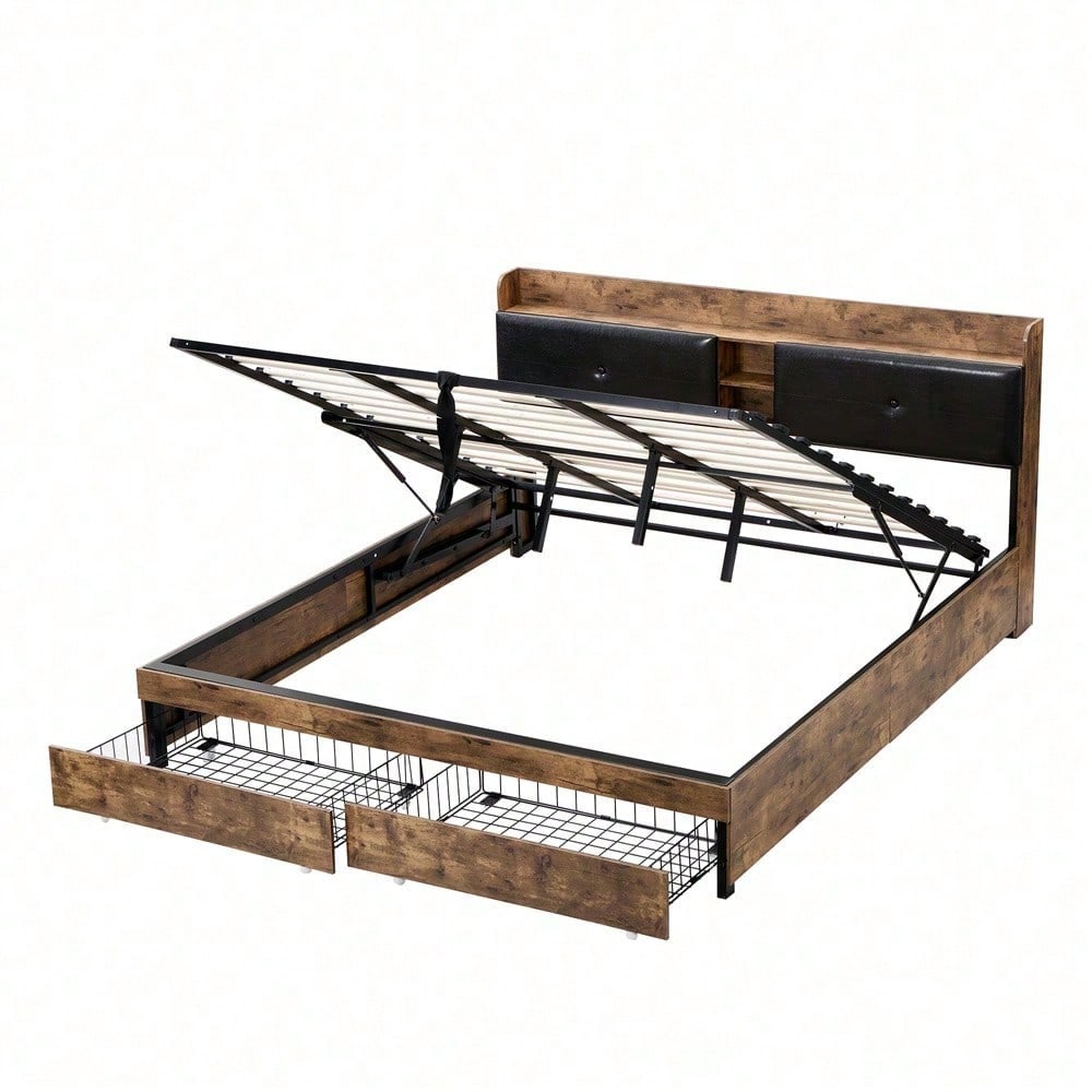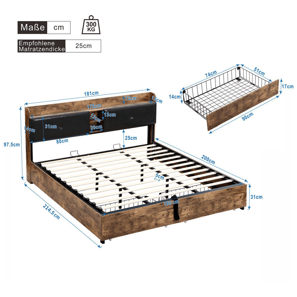 Dimensioni del prodotto: vedere l'immagine sopra. Dimensioni del prodotto: vedere l'immagine sopra. Nota: tutte le dimensioni sono approssimative. Materiale principale: MDF + METALLO + PVC Capacità di carico massima: 300 kg Paese di origine: Cina Materasso applicabile: 180 x 200 cm Peso netto: 77,85 kg