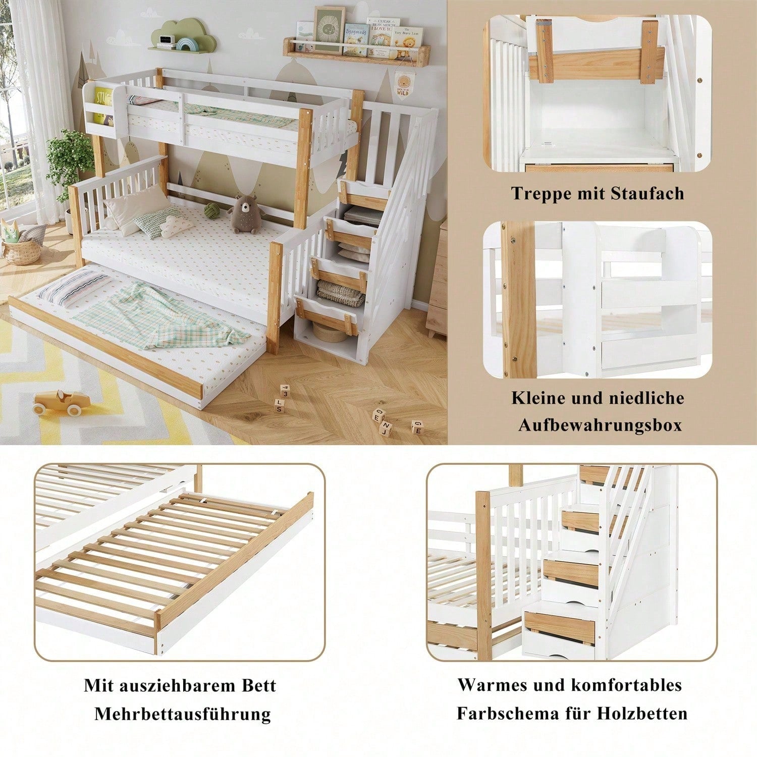 ![[N622F419012N] Etagenbett, Kinderbett, mit Fallschutz und Gitter, Entworfen mit drei Bettpositionen, mit Rollbett, Spezielles Türverkleidungsdesign, Ecktreppe, Kiefer+MDF, Weiß+Natur, 90x200&120*200cm](http://arvaehome.com/cdn/shop/files/1755512065a01eae413f506c41771307cff606e86a.jpg?v=1757763313&width=1445)