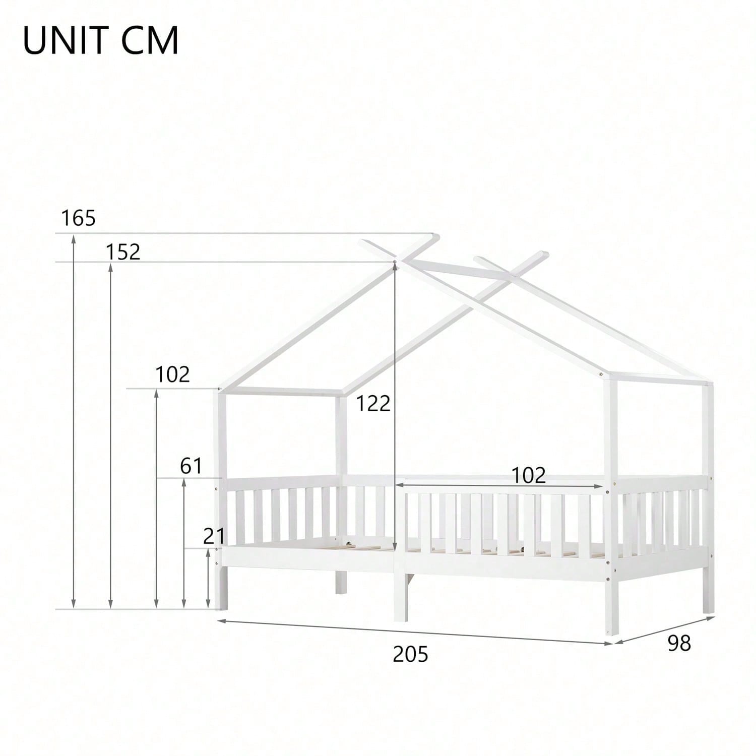 Specification Product Information Item Code: WF281830AAW Product Type: Single Box Product Product Name: , weiß (200x90 cm) Place of Origin: China Main Color: White Main Material: Solid Wood Bed Size: 90cm*200cm White without Drawers: White without Drawers Product Dimensions Assembled Length (cm): 205.00 Assembled Width (cm): 98.00 Assembled Height (cm): 165.00 Product Weight (kg): 26.00 Package Size Length (cm): 148.00 Width (cm): 32.00 Height (cm): 22.00 Weight (kg): 28.50 Product Features Intimeres Design. Um zu verhindern, dass Kinder die Schrauben berühren, ist das Produkt mit mehreren weißen Pfosten und Kunststoffkappen ausgestattet, um den Montageort abzudecken.
