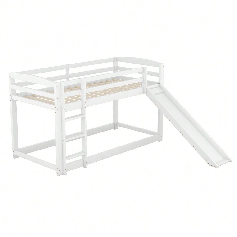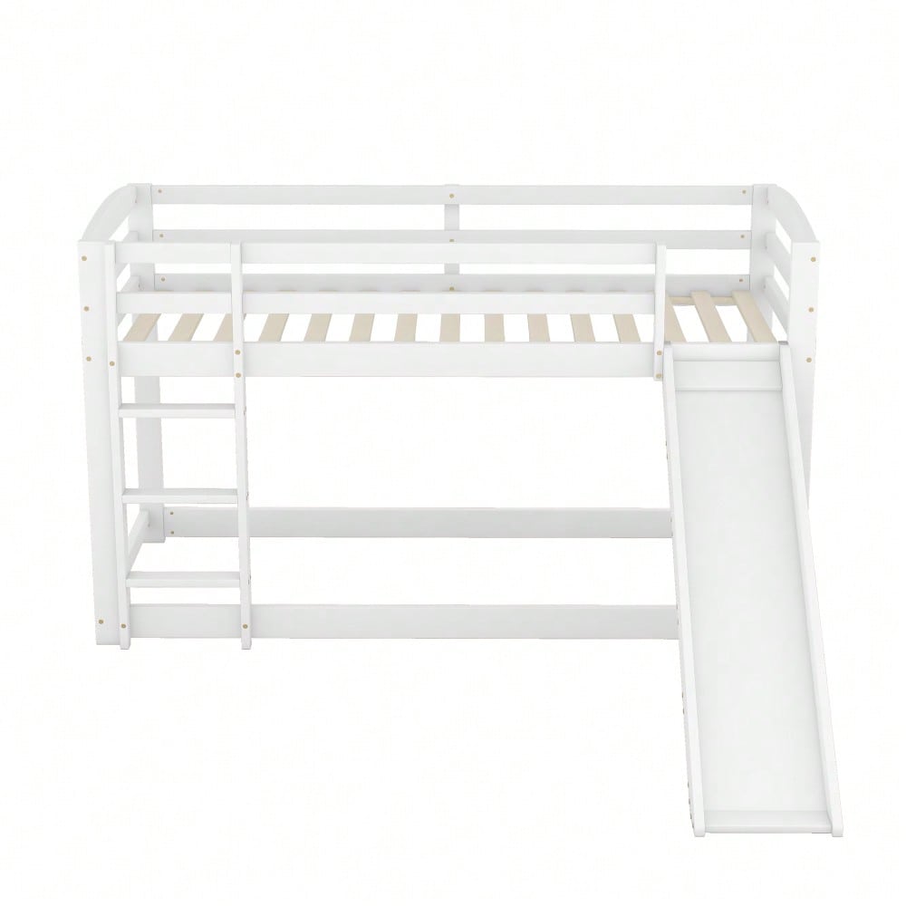 =(WX000303AAK-1) Etagenbett für Kinder und Jugendliche, Kinderbett mit Rutsche, Massivholzrahmen, einfache Montage, 90x200cm, weiß